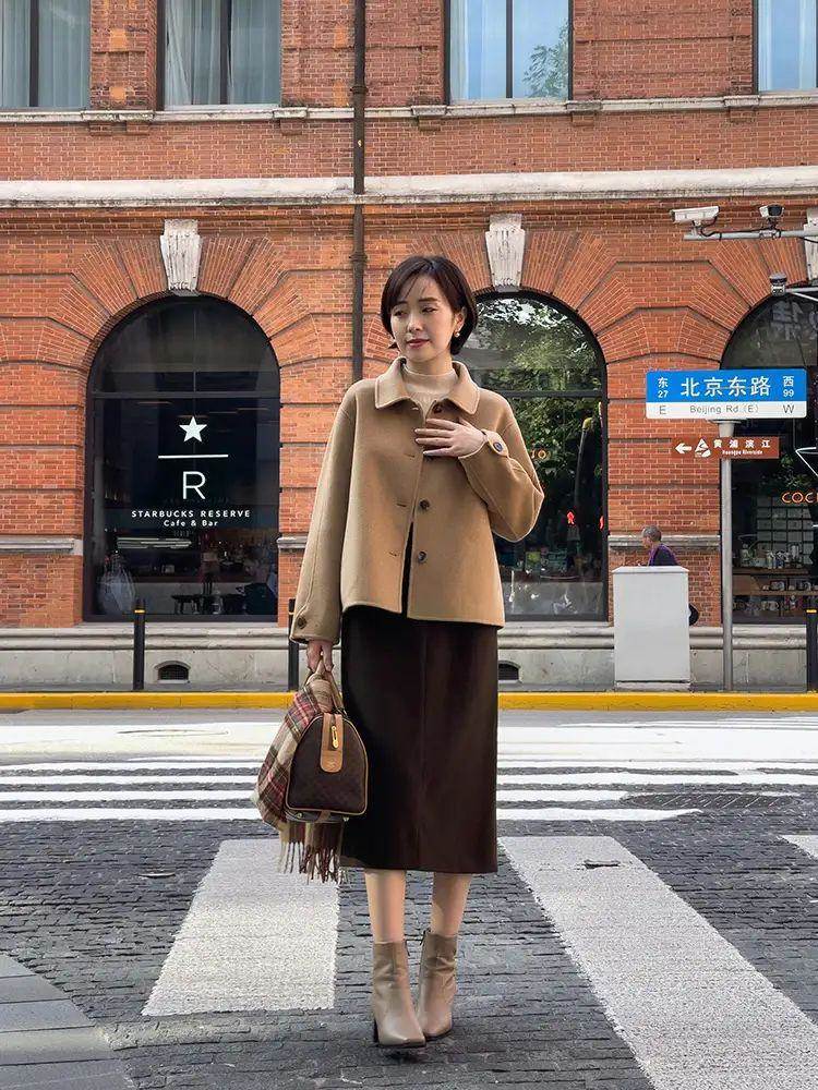 H型穿法也是很符合中年女人身材的,這種穿衣方法主要會選擇直筒版型的服裝,比如直筒短款外套+直筒半身裙的組合,就可以強調服裝的輪廓,隱藏著你的真實身材。直筒款式的服裝不能太松垮,比原本大一碼,的效果會更加好看。
