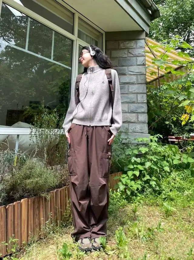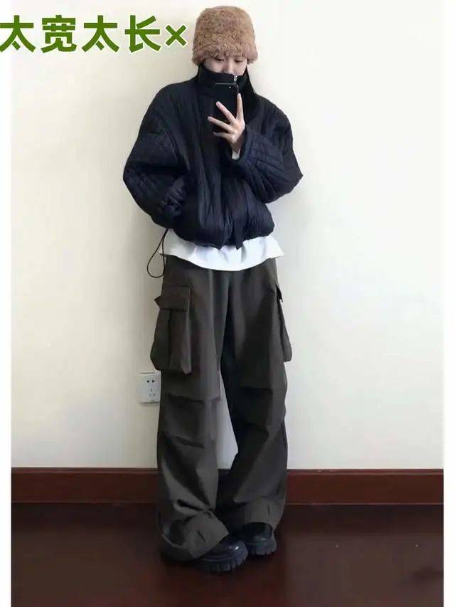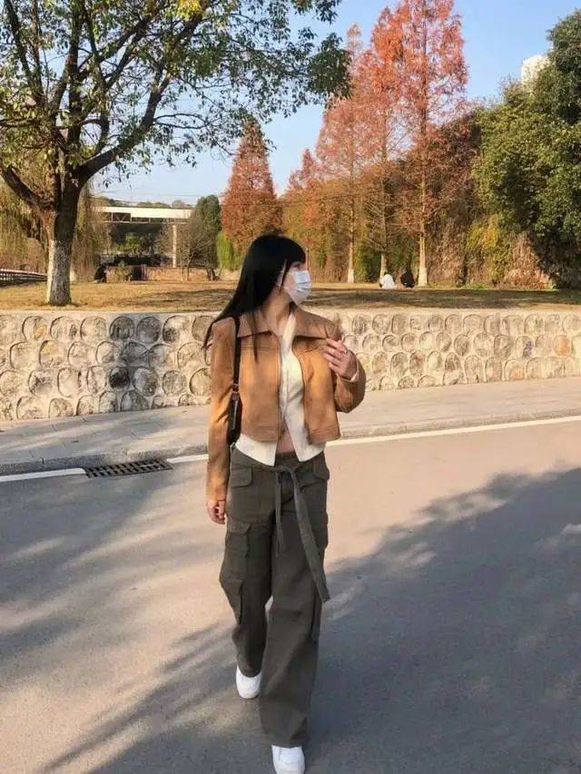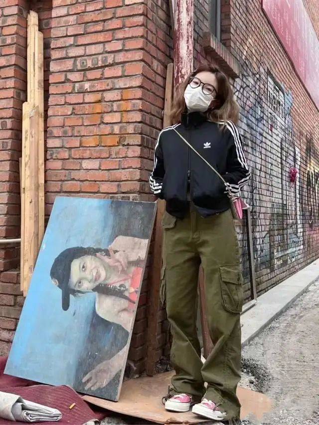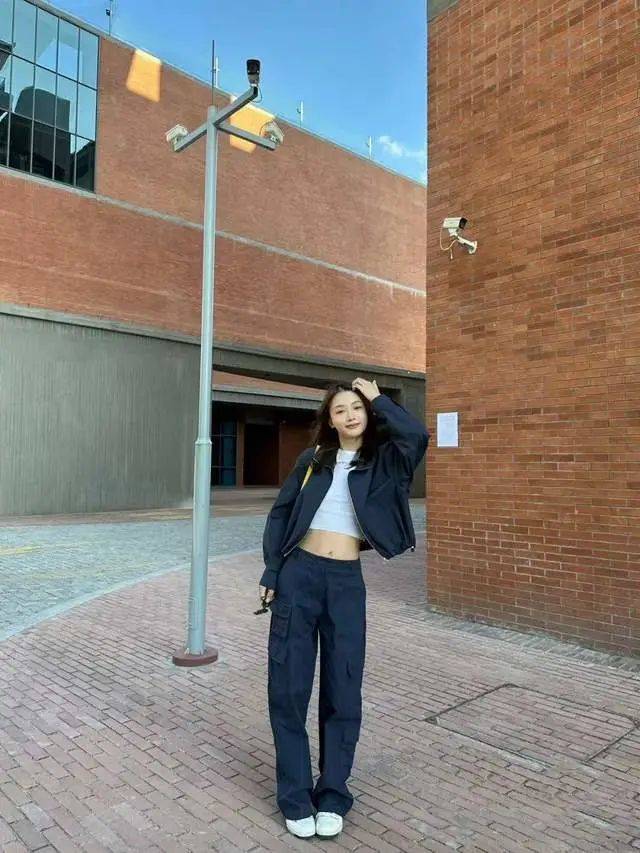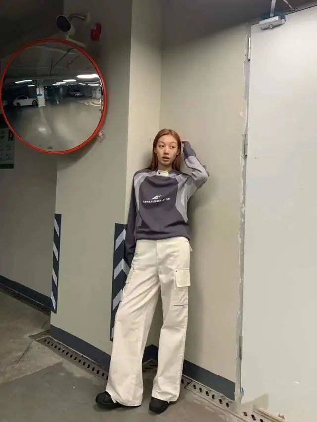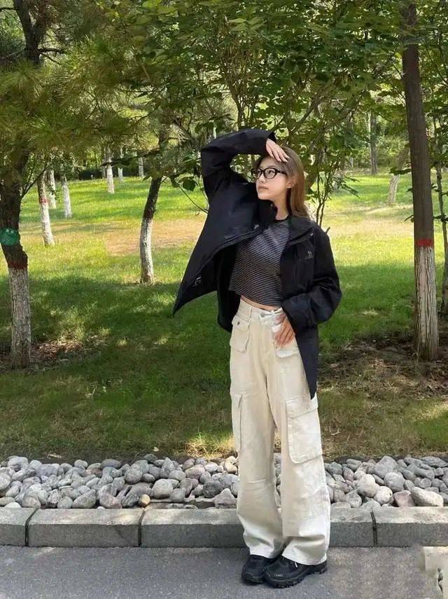 高妹穿工裝褲可以穿得放松隨性一點,但小個子還是有必要注意以下比例的問題的,不要用長上衣搭配寬松的長褲,這樣這會更壓個子,看起來更矮。