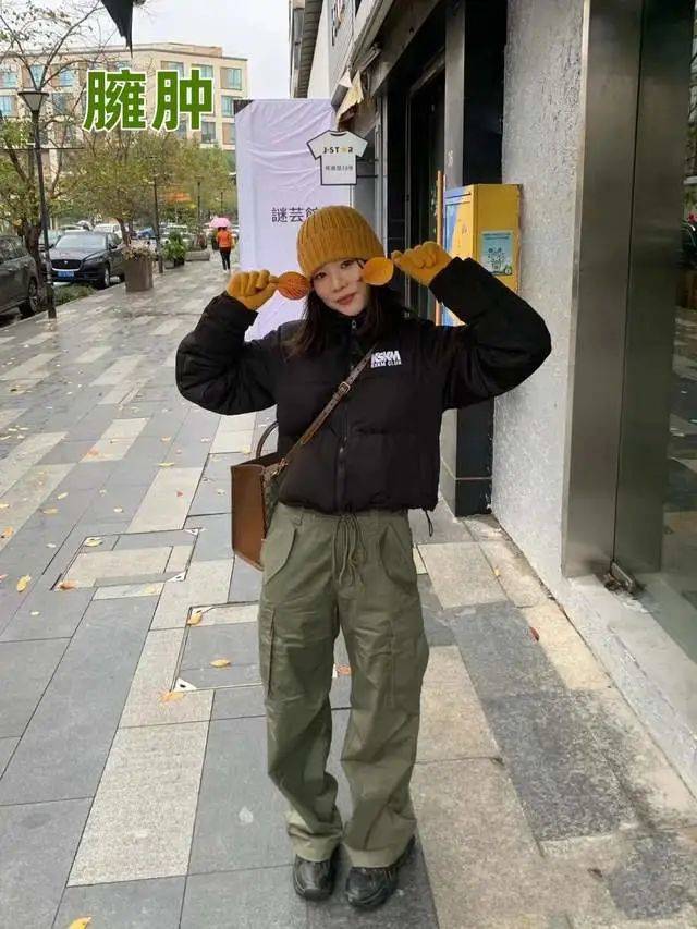 羽絨服就不要選擇oversize的版型了,選擇短款設計更加利落,膨脹感也沒那麼強。
