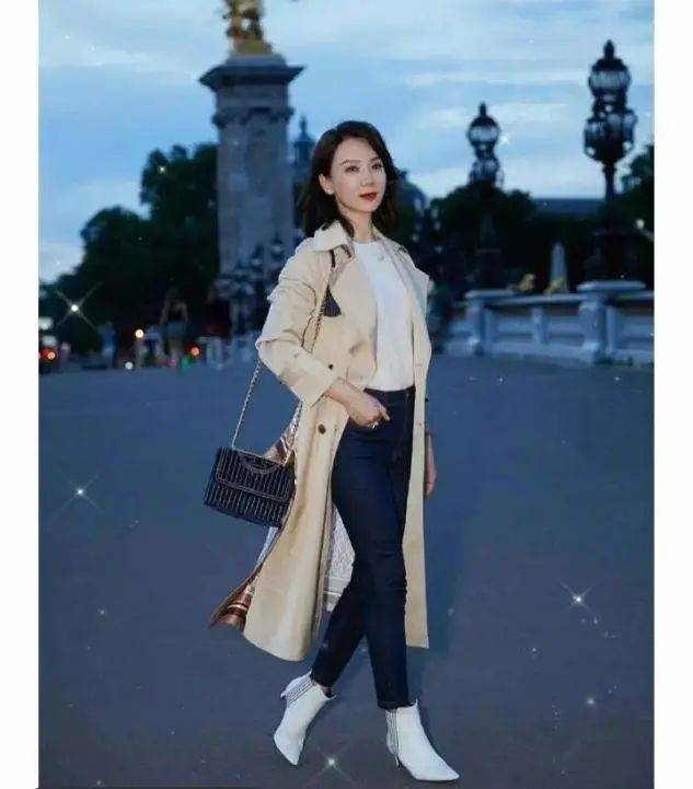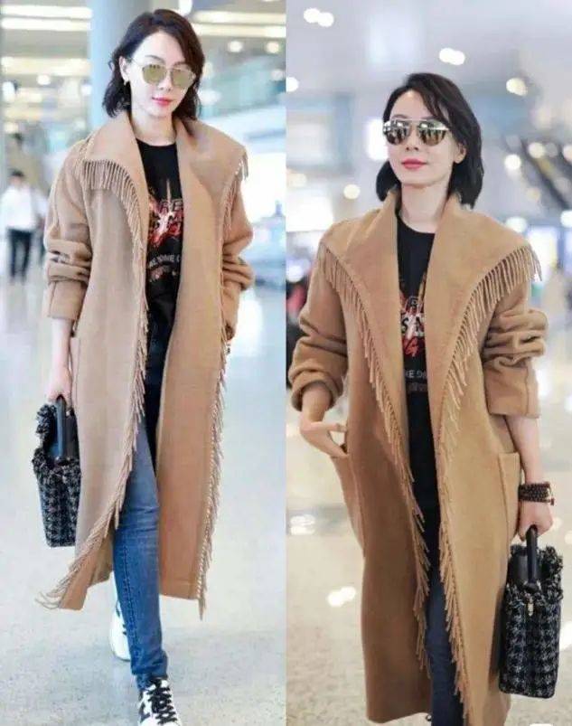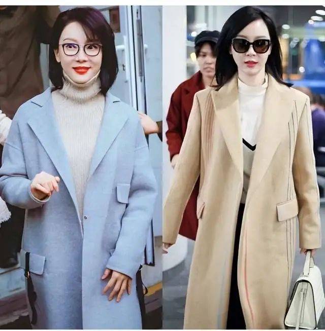 很多中年女人穿大衣總是裹得嚴嚴實實,但其實真正從容又大方的穿法是像陳數這樣的敞開搭配,利用小高領的毛衣或者打底衫作為內襯,顯得身材曲線特別優雅。