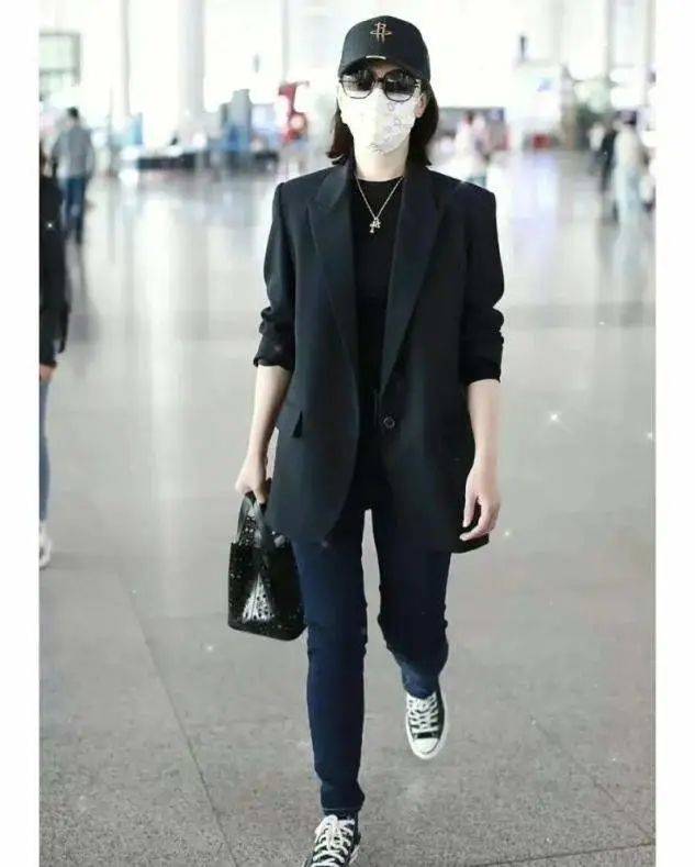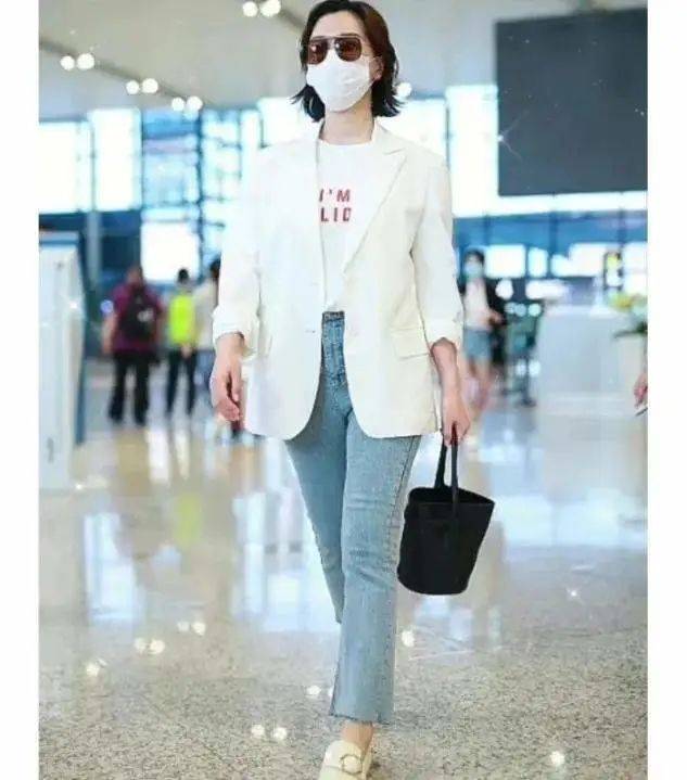 年齡越大的女人,穿搭西裝越要注意。如果不是通勤的場合,西裝可以不用和西服褲進行搭配,利用牛仔褲的休閑感,來強化日常穿搭的舒適度。冬季穿的牛仔褲還可以增加內搭,修身的褲裝和西裝的整體輪廓進行呼應,顯高又很顯瘦。