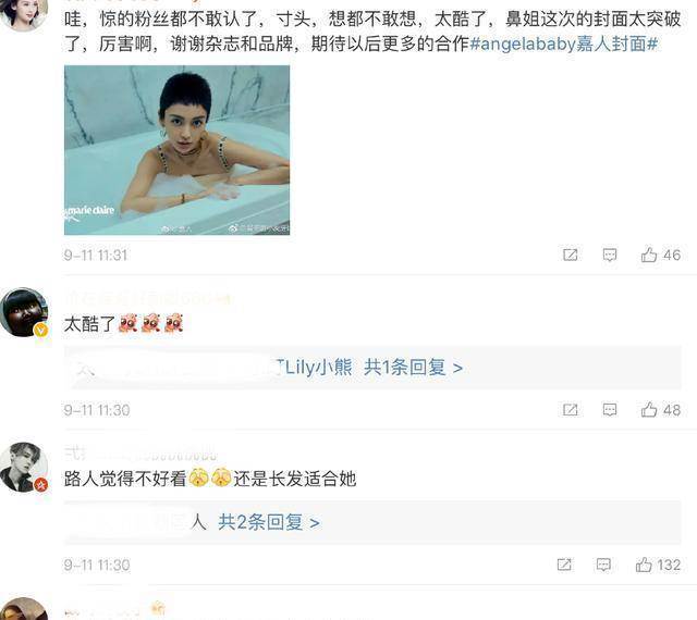 紛紛發表自己的看法,一些人認為angelababy這次突破自己,挑戰一般人不敢挑戰的髮型,太驚艷了,「怎麼可以這麼帥啊」「解鎖新髮型!好帥啊!」「你真酷呀」!