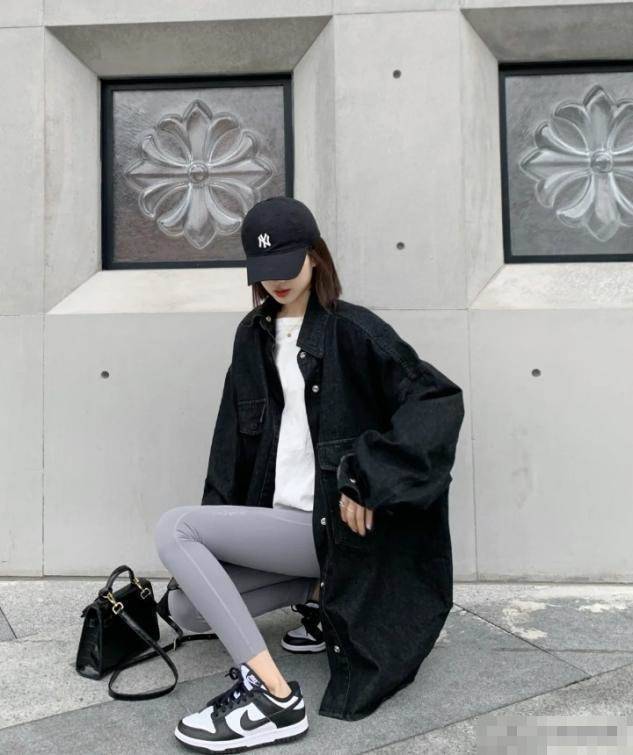 本身腿型短粗或者腿型不直的女生,建議直接選擇過膝長度的外套,選擇敞開的穿法可以修飾腿型側邊的輪廓,厚底款式的運動鞋色彩很豐富,任意選擇一款可以呼應外套的色彩,用純黑色的瑜伽褲優化小腿根部的曲線,這樣的穿法也特別顯瘦。