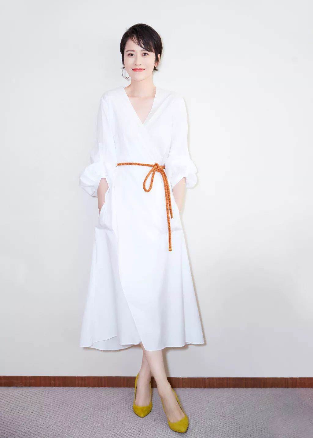 白色的連衣裙可以打造出一身干凈利落的造型,沒有多余的元素和裝飾,非常簡約時尚,也可以添加一根系腰帶作為點綴,同時也能強調出腰線,更好的劃分身材比例,小面積的亮色可以極大的增加造型的美感,比如這雙金黃色高跟鞋,氣質又顯白。