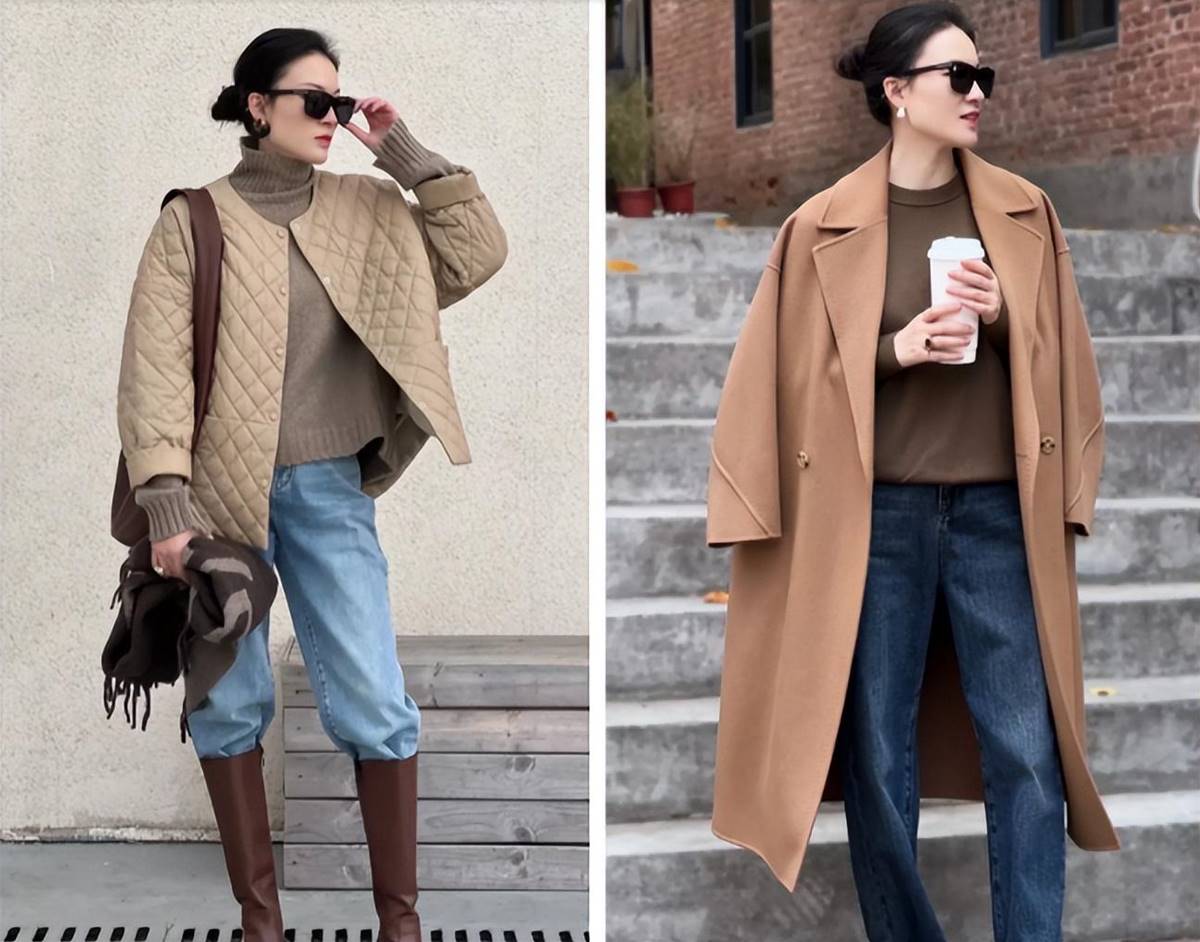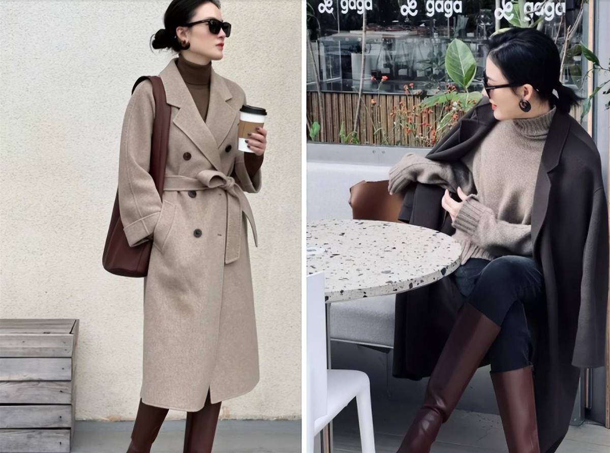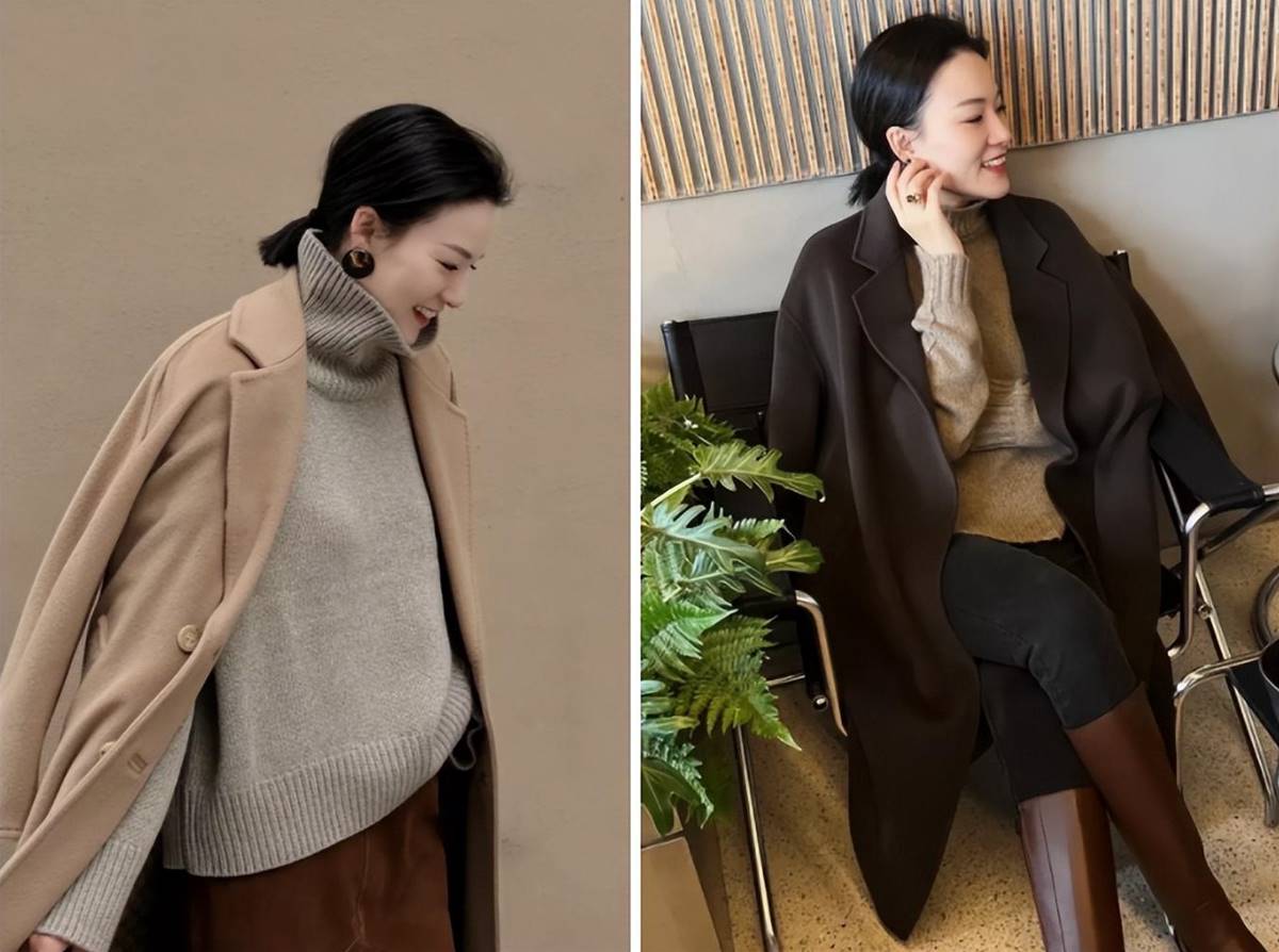 秋冬是呢大衣的主場,利用黑色、駝色、灰色等經典色彩,內搭一件針織衫,簡約又顯高級。不過需要注意呢大衣款式的選擇,在版型上,一般來說選擇H版型的適合大多數人,而若是你的腹部比肩寬,那麼選擇繭型(o型)版型會更顯瘦,注意避開A字版型大衣,容易顯拖沓顯矮。