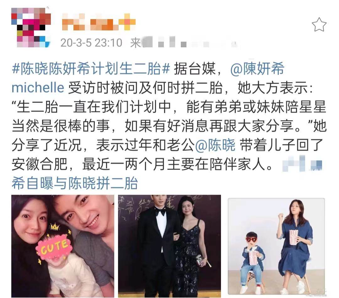 其實二胎一直在陳妍希和陳曉的計劃之中,希望有一個妹妹或者弟弟能夠陪著小星星,陳妍希曾表示如果有好消息會和大家分享。