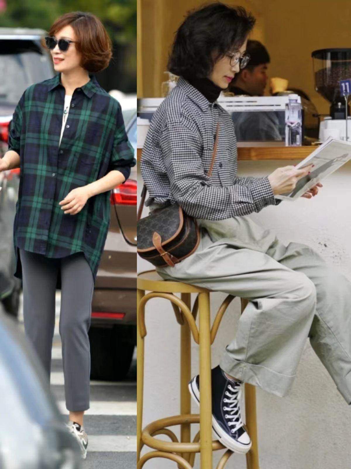 看看三木媽媽,用格紋襯衫疊穿黑色高領打底衫,優雅時尚又顯得人很有文化!