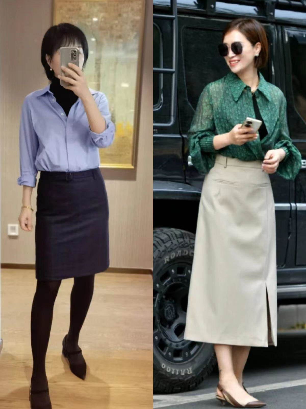 襯衫與打底衫的搭配可以組合褲裝,也可以搭配裙裝,都能讓原本的造型更時髦,造型重心得到上移。