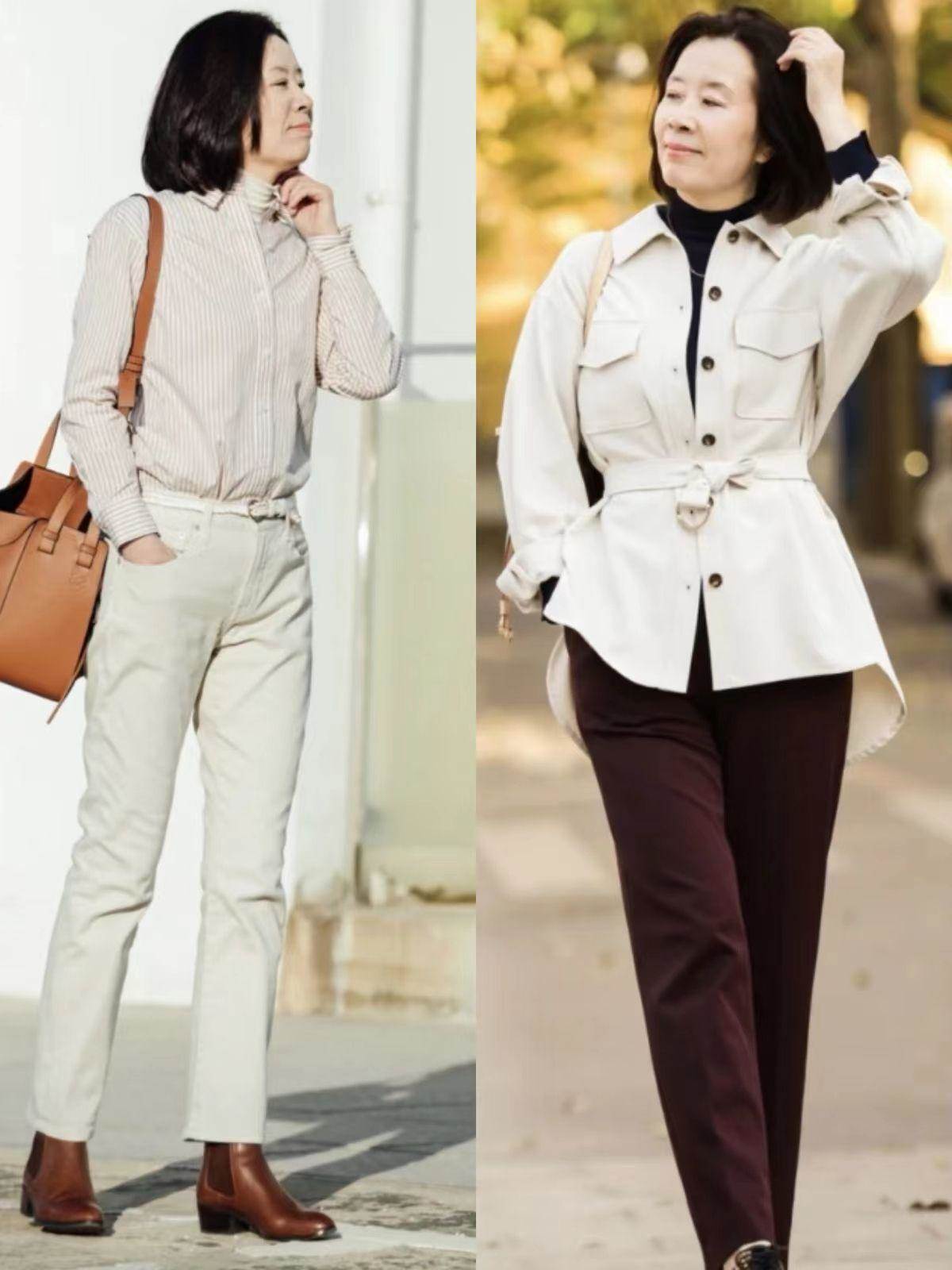 女人年紀再大,都要懂得:襯衫疊「打底衫」才好看,輕松玩轉時尚