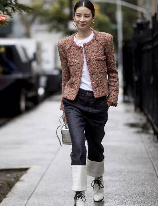 今年流行一種穿法:「小香風+直筒褲」,高級又顯瘦,誰穿誰好看