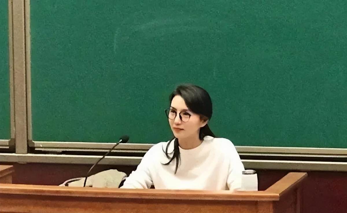 如今42歲的她,戴上了黑框眼鏡、扎著低馬尾,在中戲的教室里當起了老師