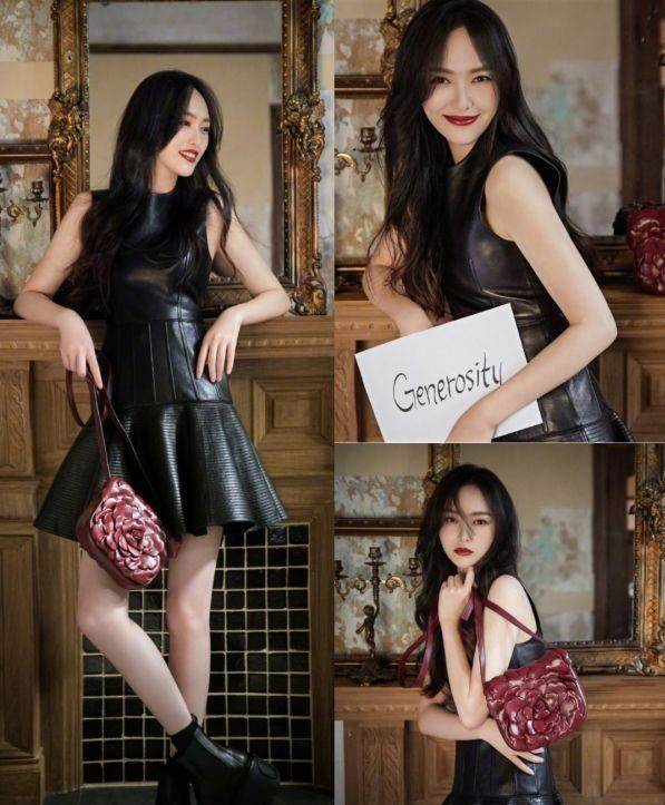 純黑色的皮質連衣裙看起來就很酷,在裙身作為裝飾的橫向羅紋和立體感的線條,更讓這款裙子顯得十分有型;唐嫣腳上單品的單靴因為又是屬于厚底的板鞋,所以將其踩到腳上之后,她就可以越發清晰的體現出個子的高挑感。