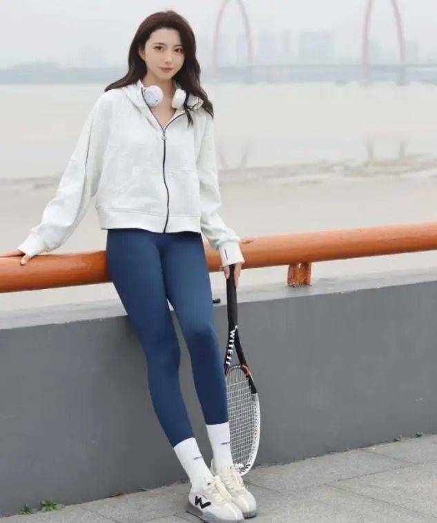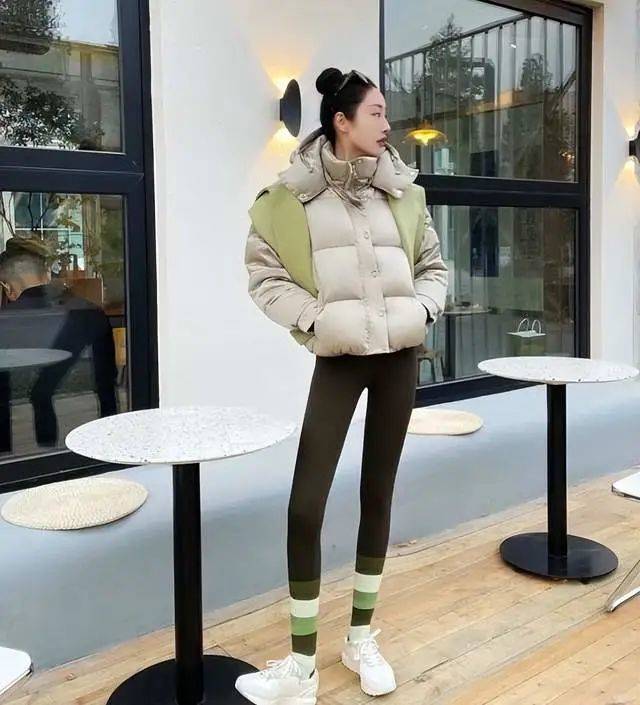 縮短瑜伽褲的長度,是為了給腿型延長留有空間,大部分時尚博主會用來搭配長襪,這樣可以層層遞進腿部的延長效果。建議搭配運動鞋出門,組合沖鋒衣,這種元氣少女的感覺,真的會看起來很減齡。