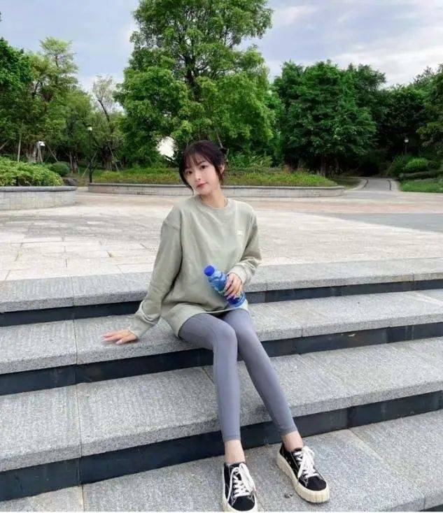 運動裝和打底衫的合拍效果簡直不要太好,平常出門運動或者散步的時候,打底衫選擇低領的款式,利用運動裝的廓形效果,對稱出瑜伽褲的曲線感,妳的雙腿會看起來纖細修長。