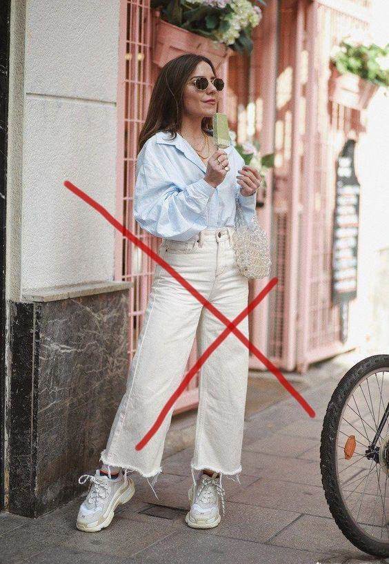 其實不太矮個子女生如果搭配能力,衣著駕馭能力不強,真的不建議大家選擇闊腿褲,尤其是那種八九分那種褲腿很寬,或者顯胖的白色款,因為褲型有很明顯的加寬下半身的效果,因此即使是高腰,也并不能拉長身線,反而顯得整個人扁扁矮矮的,不好看。
