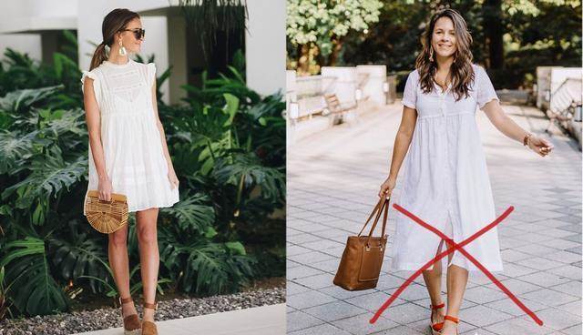 對于矮個子女生來說,修身高腰的連衣裙是最好的選擇,如果就是喜歡寬松版型,除了要注意高腰的設計之外,中長款是大忌,尤其是下擺比較寬大的設計,瞬間就讓身高減去5厘米。