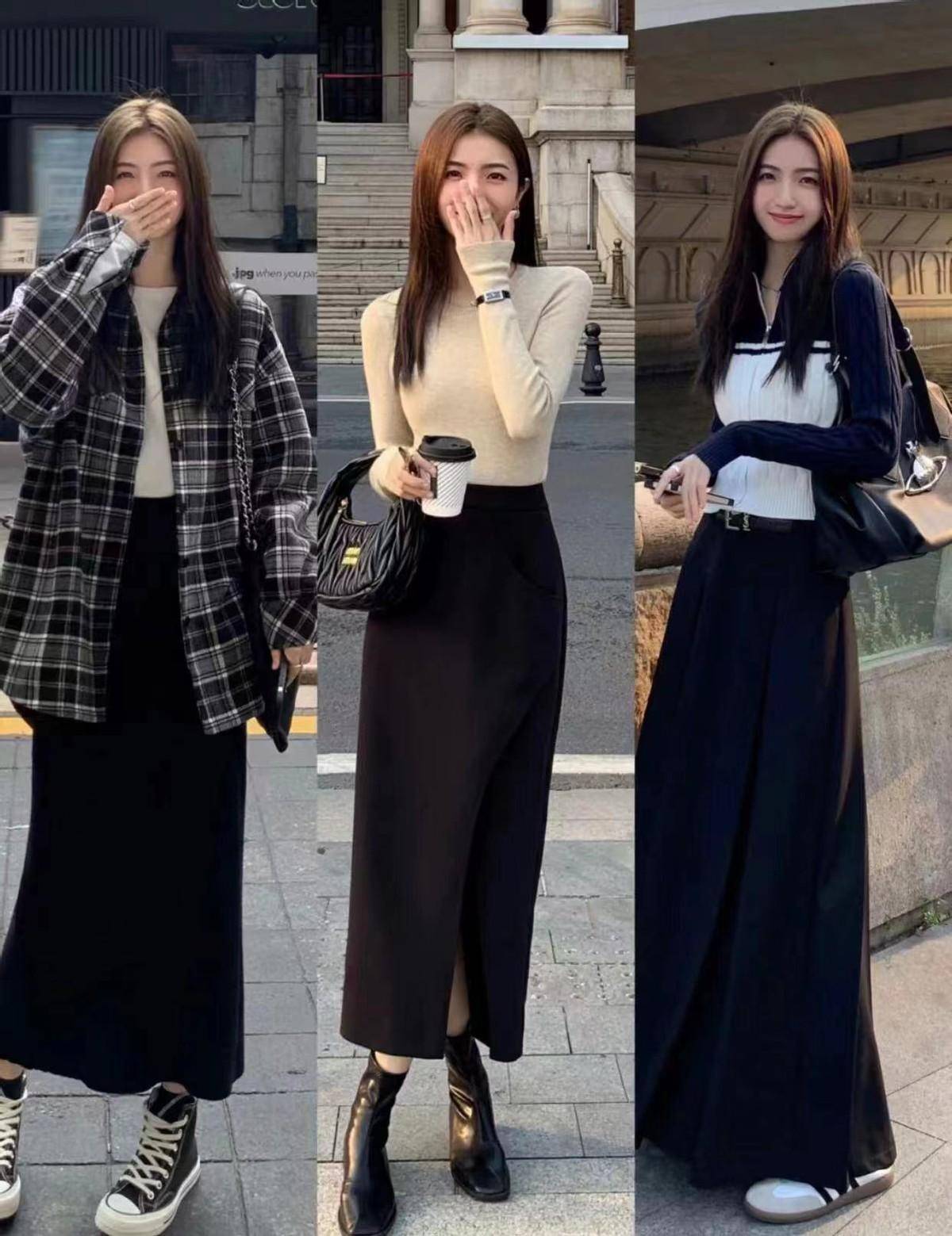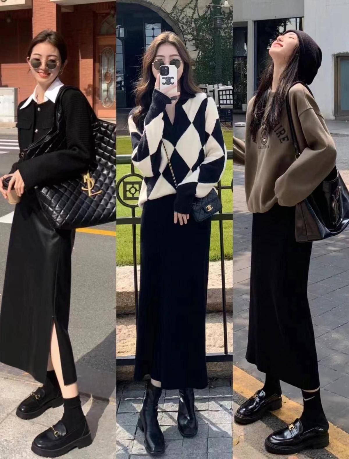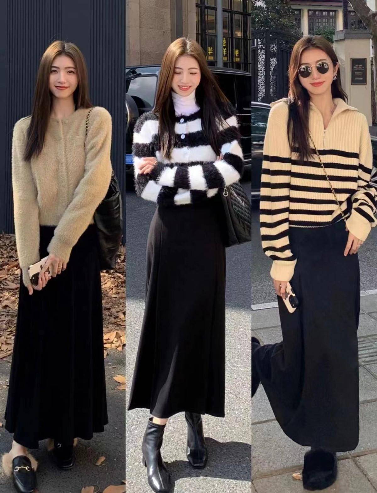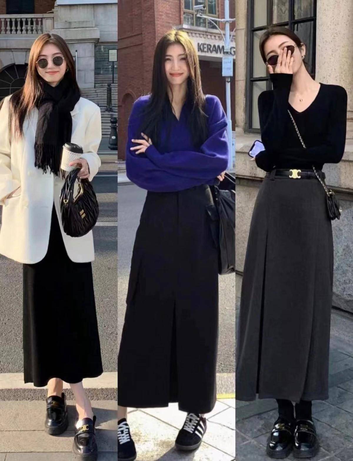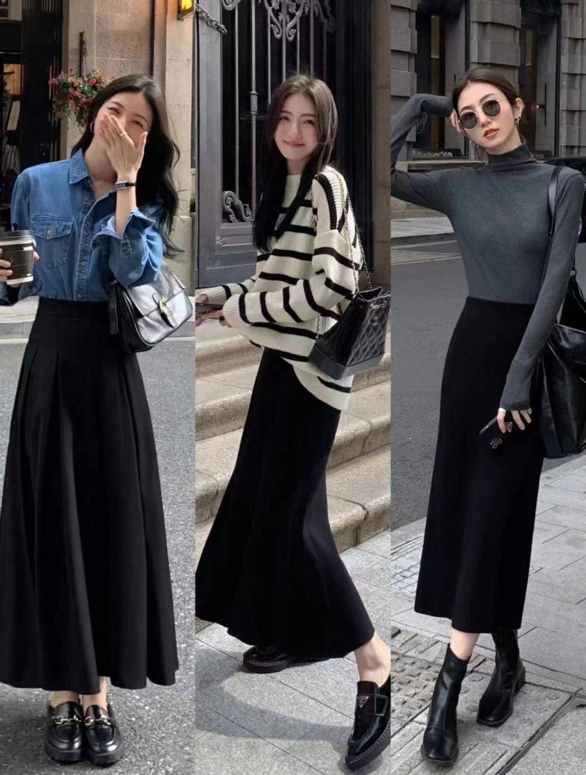冬天建議選擇經典的黑色半身裙,對身材的包容性強,而且非常好搭配與冬季的各類上半身單品都能夠完美結合。