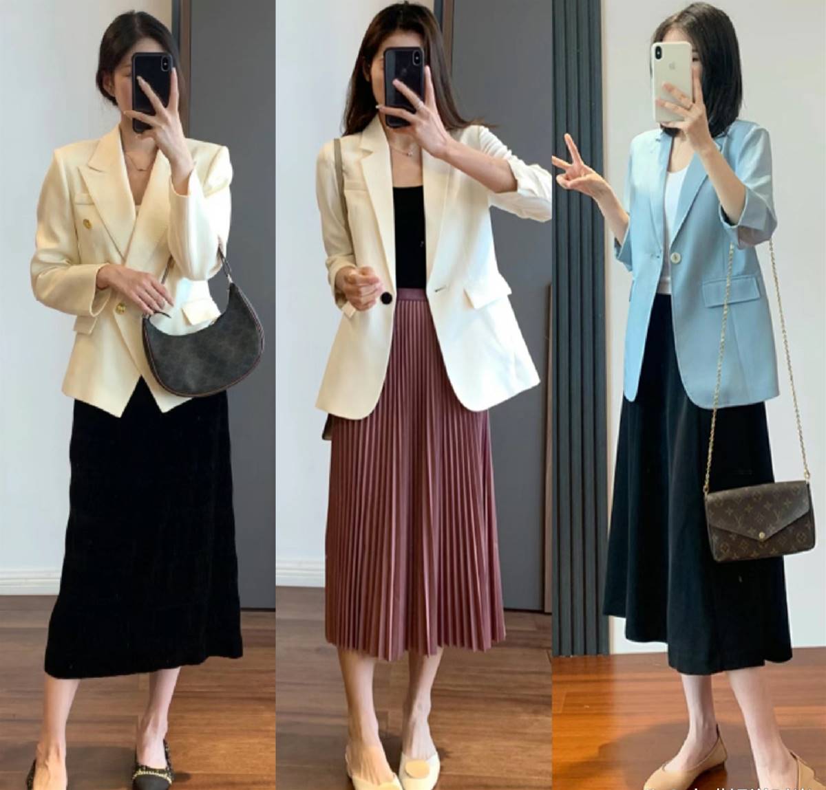 浪漫的春天自然少不了各種裙裝,柔和優雅的氣質與硬朗帥氣的西服剛好中和,穿出亦柔亦剛的氣場,更有韻味。用過膝的高腰A字裙搭配收腰西服,很適合臀胯較寬的姐妹隱藏贅肉。或者是低調優雅的百褶裙、直筒裙,用短內搭強調腰線,外套敞開更松弛顯高,是小個子微胖女生也能輕松拿捏的一組優雅穿搭,這個春天快學起來吧!