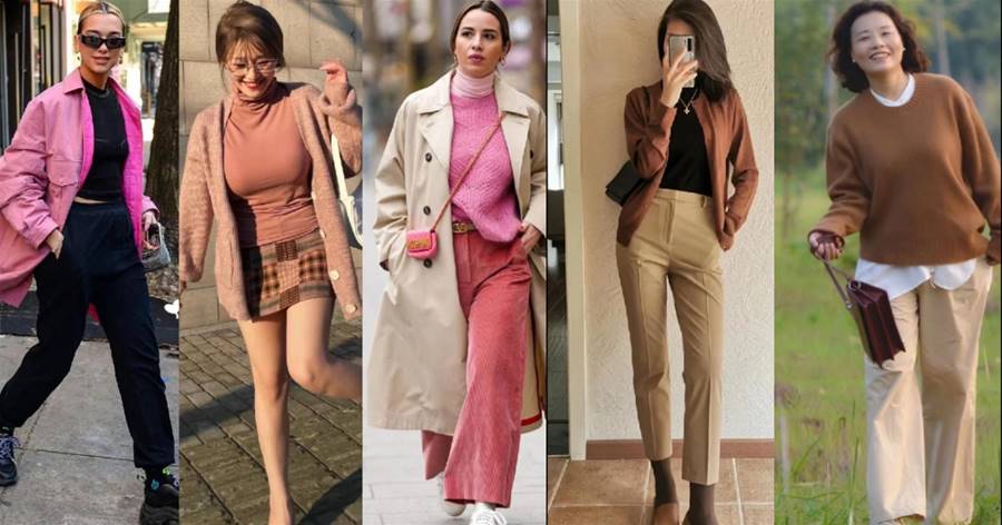 皮粉色雖然摻入了灰色調,整體上比較暗,沒有亮粉色那麼難駕馭,但皮粉色缺點也很明顯,皮粉色配合燈芯絨或者針織單品,看起來都特別顯舊,皺皺巴巴沒什麼質感。